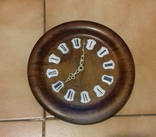 Horloge électrique en bois véritable Fonctionne sur pile Diamètre : 25 cm Prix : 10 €