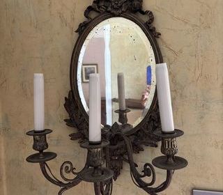 Paire d'appliques électrifiées avec miroir ovale en laiton