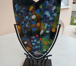 Vase décoratif en verre fusionné. pour fleurs séchées