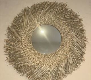 À vendre : superbe miroir décoratif en fibres naturelles, idéal pour apporter une touche bohème et chaleureuse à votre intérieur. ? Caractéristiques : ? Diamètre total : 80 cm