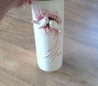 vase en porcelaine blanche et rose avec fleurs et oiseaux pour chambre de petite fille.