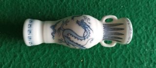 Vase miniature japonais en porcelaine ultra fine. Objet de vitrine ou de maison de poupée. Hauteur 8 cms. Décor représentant un dragon volant effectuant des volutes. Excellent état
