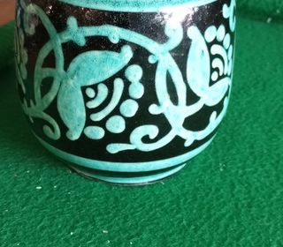 Très rare vase boule signé Paul Jacquet (1883-1968). En céramique émaillée polychrome. A décor de fleurs stylisées bleues. Excellent état voir photos. Hauteur 12.5 cms. Signé sous