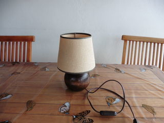 Lampe à poser pied boule en bois, hauteur 24 cm , ampoule petit culot. Parfait état.
