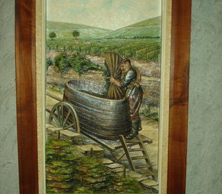tableau scène vendange en relief composé de bois et autre matière plastique (dimension H 80 cm L 51cm)