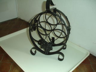 porte bouteilles en fer forgé décor grappe raisins état neuf pour 3 bouteilles