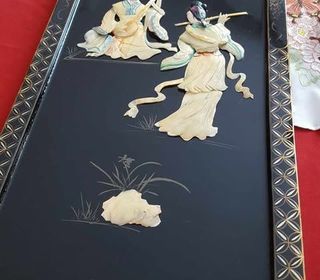 Cadre ancien asiatique motifs nacre en relief fait main N°1344 A prendre sur place uniquement Cadre en très bon état Ce magnifique cadre asiatique ancien personnages en relief