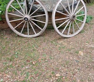 Deux roues de charrette bois diamètre 110 idéale décoration....