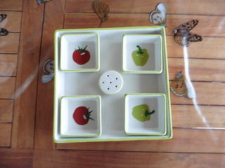 Apéro party accompagné de 4 ramequins, le rond central permet de déposer les piques.