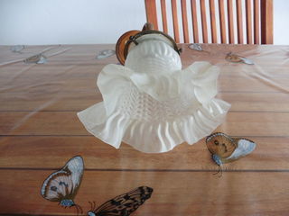 Lampe vintage, pied tourné en bois hauteur 13 cm, abat jour 14 cm, ampoule petit culot. Parfait état.