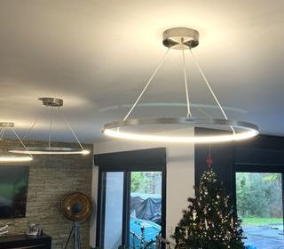 Vends lot 2 Lustres modernes en métal argenté à LED