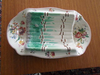 Vends superbe plat à asperges en faïence signé de la célèbre faïencerie Lonchamp de Bourgogne. Il est estampillé au dos : Longchamp Terre de fer n° 1091. Il est en parfait état, a