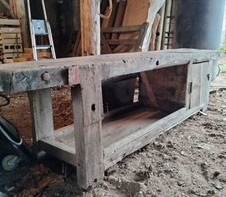 Établi à rénover en chêne massif. Dim : Long 277 - Prof 58 - HT 74