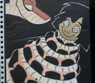 bl - peinture - kaa et moogli - le livre de la jungle - sur papier aquarelle format A4 - 300 g