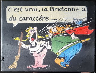 bl - peinture - asterix - les bretonnes ont du caractere - toile sur chassis - 24 x 18 cm