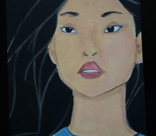 Tableau venant du Sri Lanka, effet briant très beau à la lumière, le cadre a un angle endommagé qui peur être aisément réparé avec du mastic.