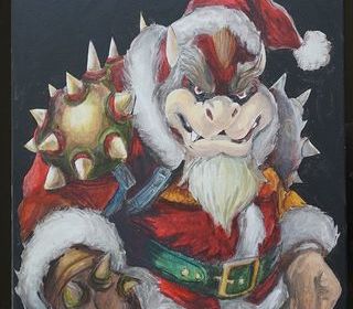 bl - peinture - bowser en pere noel - mario - toile sur chassis - 40 x 50 cm