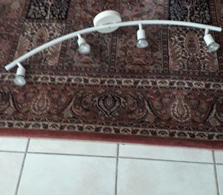 Lustre En métal blanc, 4 lampes orientables avec 4 ampoules en état de fonctionnement Dimensions 92cm de large, Hauteur totale 14,5cm Prix de vente 12 € A retirer sur place Di