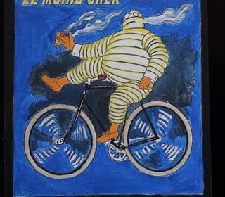 bl - peinture - publicite - pneu velo Michelin - sur papier aquarelle format A4 - 300 g