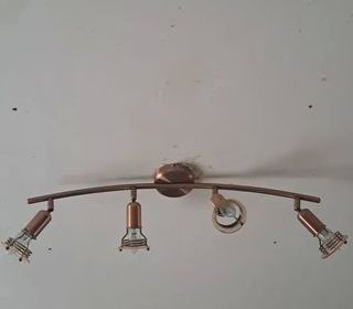 Rampe de spots plafond avec lampes orientales et ampoules fournies de coloris cuivre. État neuf.