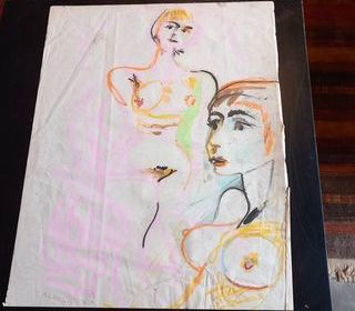 papier de KLIMEK (1912-1992) avec tampon de l'atelier 1998, composition mixte encre et pastel, 41x51