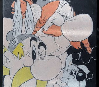 bl - peinture - asterix, obelix et idefix - toile sur chassis - 30 x 40 cm
