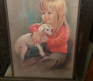dans son cadre l enfant et son agneau vintage bon etat a voir sur place prix 40 euros