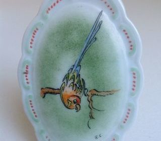Je vends cette peinture sur porcelaine de Limoges représentant un perroquet coloré, peint à la main et signé. - Type de produit : Peinture sur porcelaine - Matière : Porcelaine d
