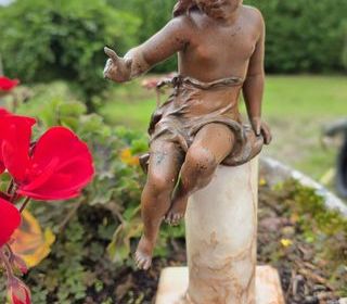 Sculpture chérubin putto sur colonne marbre statue statuette ancien Pas de paiement par le boncoin H 27 cm J ai gratté j ai vu du doré mais au niveau des doigts cassés, c'est