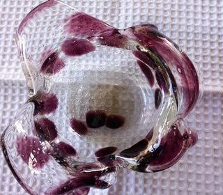 vide poche MURANO, élégant et aérien, grenat transparent et bullé, diamètre: 18cm, en parfait état.