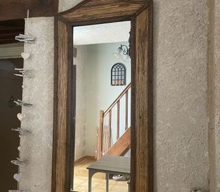 Grande glace permettant d'agrandir l'effet optique d'une pièce. Haut. 140 cm - largeur 90 cm Légers biseautages aux angles, achetée début années 70, belle qualité A prendre su