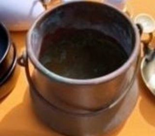 Cache-pot en cuivre avec poignée Bon état général - " dans son jus " A retirer sur place ou convenir d'un lieu entre le 29S et le 29N Dimensions en cm H 10 x diamètres 9 (ouver