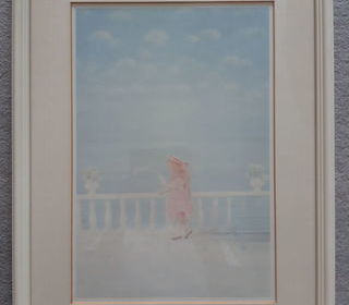 Très joli tableau, représentant une petite fille romantique lisant sur une promenade au bord de la mer Couleurs pastelles très reposantes Taille du cadre : 43 x 33 cm Ta