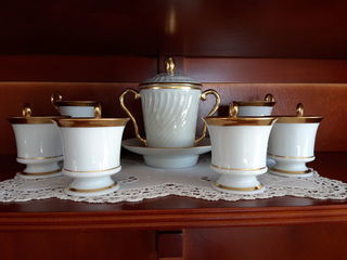 6 magnifiques tasses et soucoupes en porcelaine "NAPOLÉON", style Empire, blanches et or De chez Giraud Limoges France Décor main par Monick Schmeltz Hauteur tasse 7,5 cm,