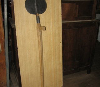 vds outil ancien servant à découper le foin longueur 148 cm - taille de la '' pelle '' 28 cm / 28 cm