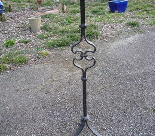 Ancien PIQUE CIERGE STYLE HAUTE ÉPOQUE MEDIEVAL FER FORGÉ PIEDS TRIPODES Fer plat 22mm à 28mm x 6mm à 10mm fer carré de 22mm x 22mm diamètre coupelle 16cm H 120cm base 46