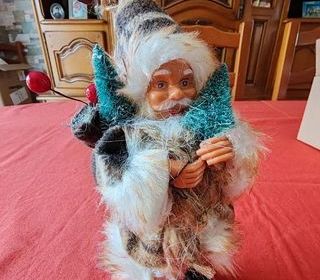 Un père Noël qui peut être suspendu au sapin ou le posé sur un meuble Les bottes, les mains et le visage sont en plastique. Le sac et le vêtement en tissu doux Hauteur 20cm