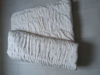 COUETTE AVEC DES MOTIFS. AUX DIMENSIONS DE 2 METRES PAR 1 METRE 70. MOTIF FLORAL. BLANC ET ROSE PALE. ME CONCTATER POUR RENSEIGNEMENTS.