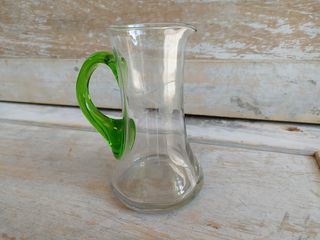 Petit Pichet à Vin 1/4L en Verre Ciselé Décor Raisin Hauteur 14cm, base 8,5cm, col 5,7cm Bon état