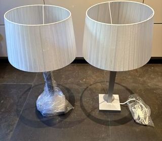 Très belles lampes décoration maison neuves sans étiquettes, sur pieds bois gris métallisé et abat-jour blanc.