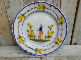 Assiette Faïence HB Henriot-Quimper Diamètre 24cm, hauteur 3,5cm Bon état