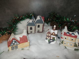 Décoration de Noël lot de 4 figurines village de Noël dimension 14 X 10 11 X 9 10 X 8 7 X 7 ( illum