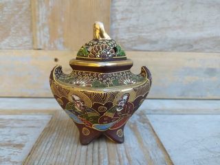 Brule Parfum Porcelaine de Satsuma Made in Japan Longueur 9,5cm, hauteur 10cm, largeur 8cm Bon état, Couvercle anciennement cassé et recollé