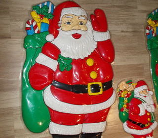 lot de 3 figurines Père Noël en plastique thermoformé, parfaites pour décorer votre intérieur ou extérieur pendant les fêtes de fin d'année. 2 grandes figurines hauteur 100 largeu