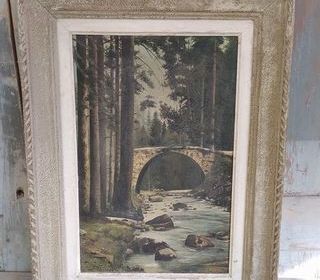Tableau Paysage Forêt Rivière en Montagne Signé G. Lebon Encadrement format 53cm x 39cm Peinture à l'huile format à vue 39,5cm x 25,5cm État : Le tableau semble avoir sub