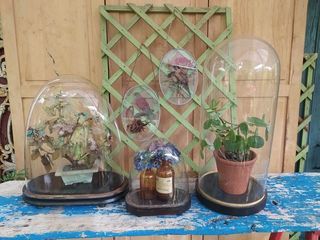 Anciens Globes de Mariée Verre Napoléon III Je renseigne ici, uniquement les dimensions intérieures du globe en verre. Globe à gauche : Hauteur 35cm, largeur 29,5cm, profon