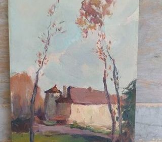 Tableau Paysage Peinture Huile sur Bois Signé Chauvire Hauteur 27,5cm, largeur 19,5cm Bon état, un petit manque dans un angle