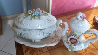 ATTENTION, PRIX EN BAISSE ! Collection Vintage Moulins des Loups 8 assiettes plates (dont 1 un peu ébréchée) diamètre 24 cm 10 assiettes à soupe (dont 3 très légèrement ébréchée