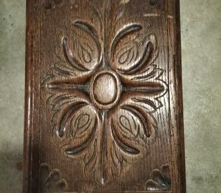 Repose pieds ancien sculpté en chêne. L 32 x l 21,5 x H 16 cm.