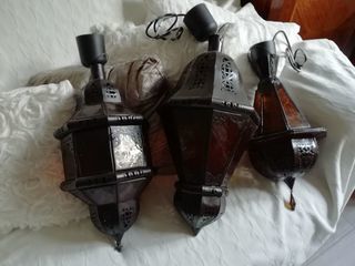 A vendre Sublime lot de lustre Marocain confectionné à la main par des artisans, présentant de jolis motifs ornementaux style vitraux. L'éclairage est doux et tamisé offrant une bo